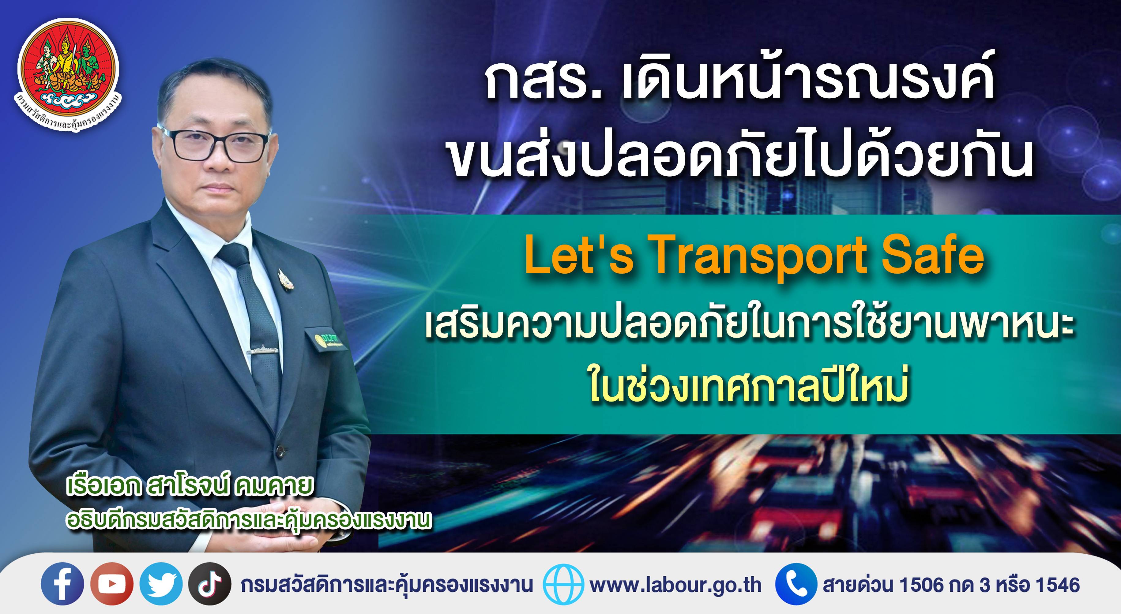กสร. เดินหน้ารณรงค์ “ขนส่งปลอดภัยไปด้วยกัน Let’s Transport Safe” เสริมความปลอดภัยการใช้ยานพาหนะในช่วงเทศกาลปีใหม่