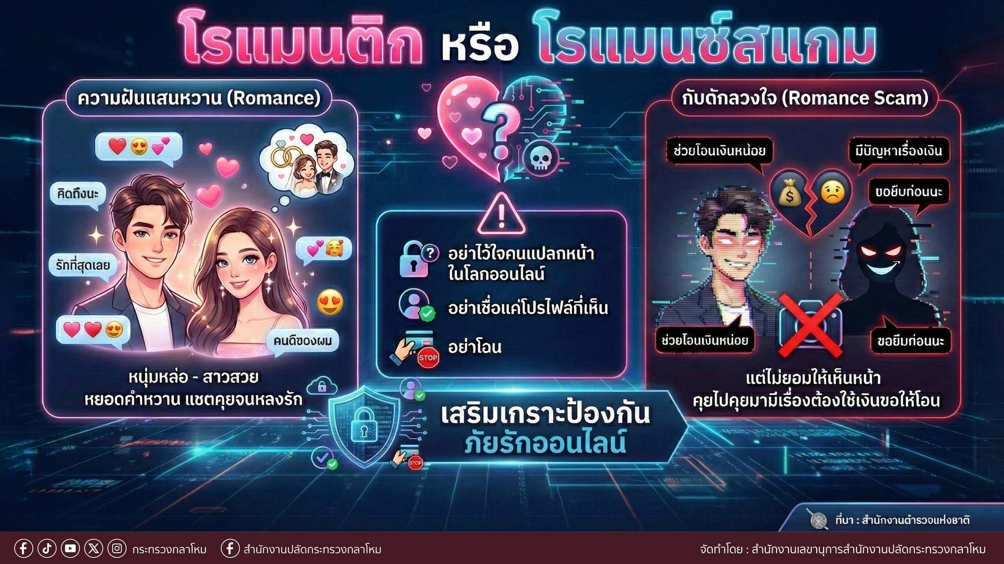 โรแมนติก หรือ โรแมนซ์สแกม อย่าไว้ใจคนแปลกหน้าในโลกออนไลน์ - อย่าเชื่อแค่โปรไฟล์ที่เห็น - อย่าโอน